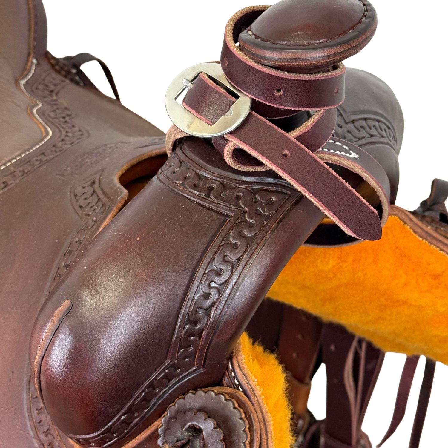 - Flank Cinch: Tooled & Stitched Billets with 2½" Wide Cinch