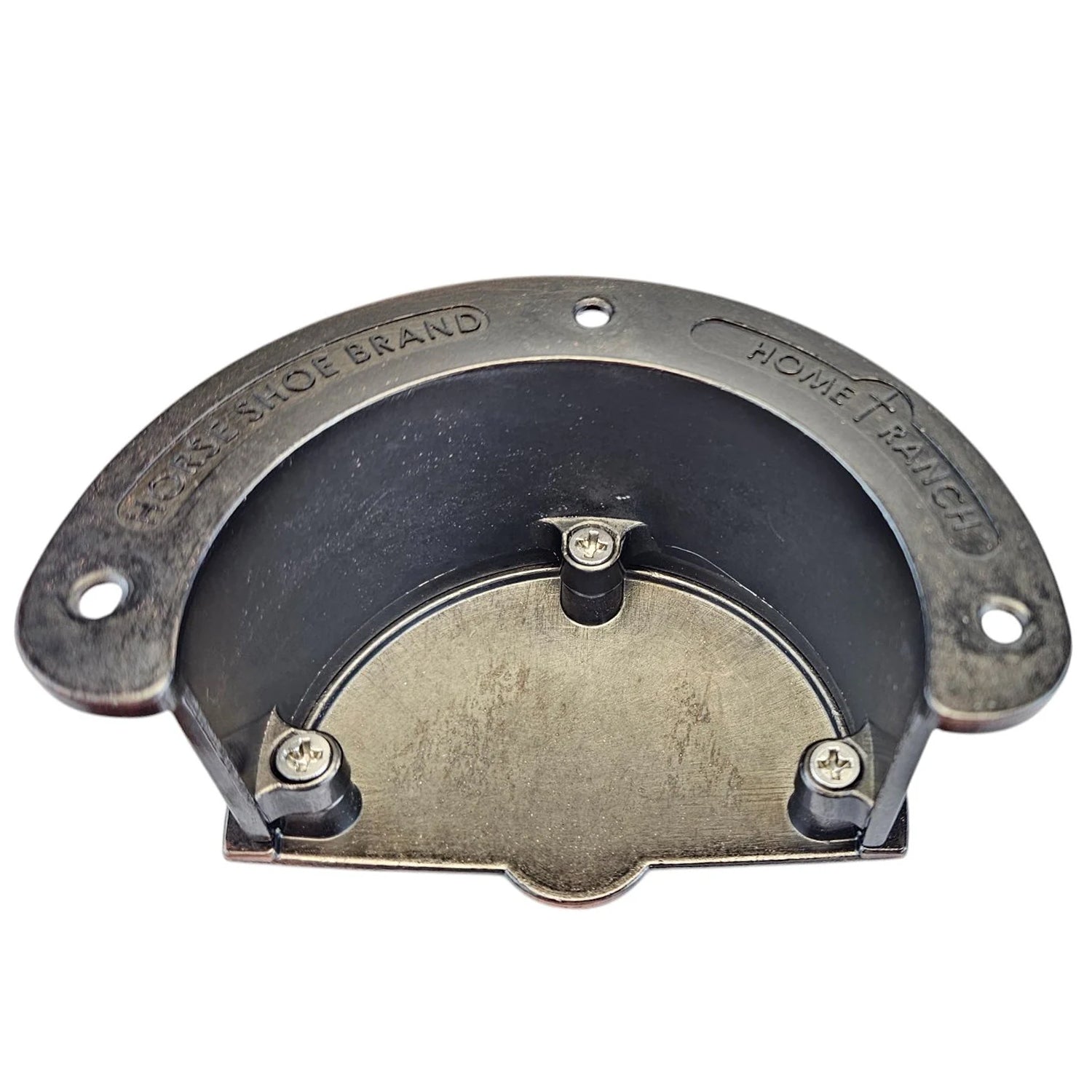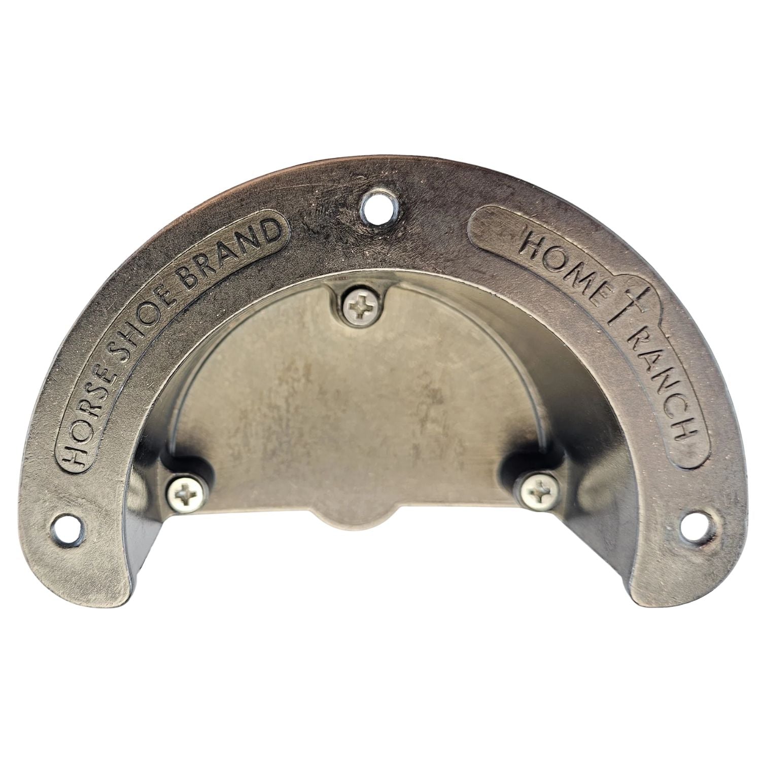 Keep your headstall in excellent shape with this Horse Shoe Brand headstall hanger, designed by Jeremiah Watt. This versatile hanger is suitable for both browband and split ear styles of headstalls. Add a touch of the old west to your barn tack room, living quarter trailer or ranch house. It can serve as a decorative hook in any area of your home, adding a touch of western charm. Available in Antique Brass, Antique Copper and Antique Nickel finish.