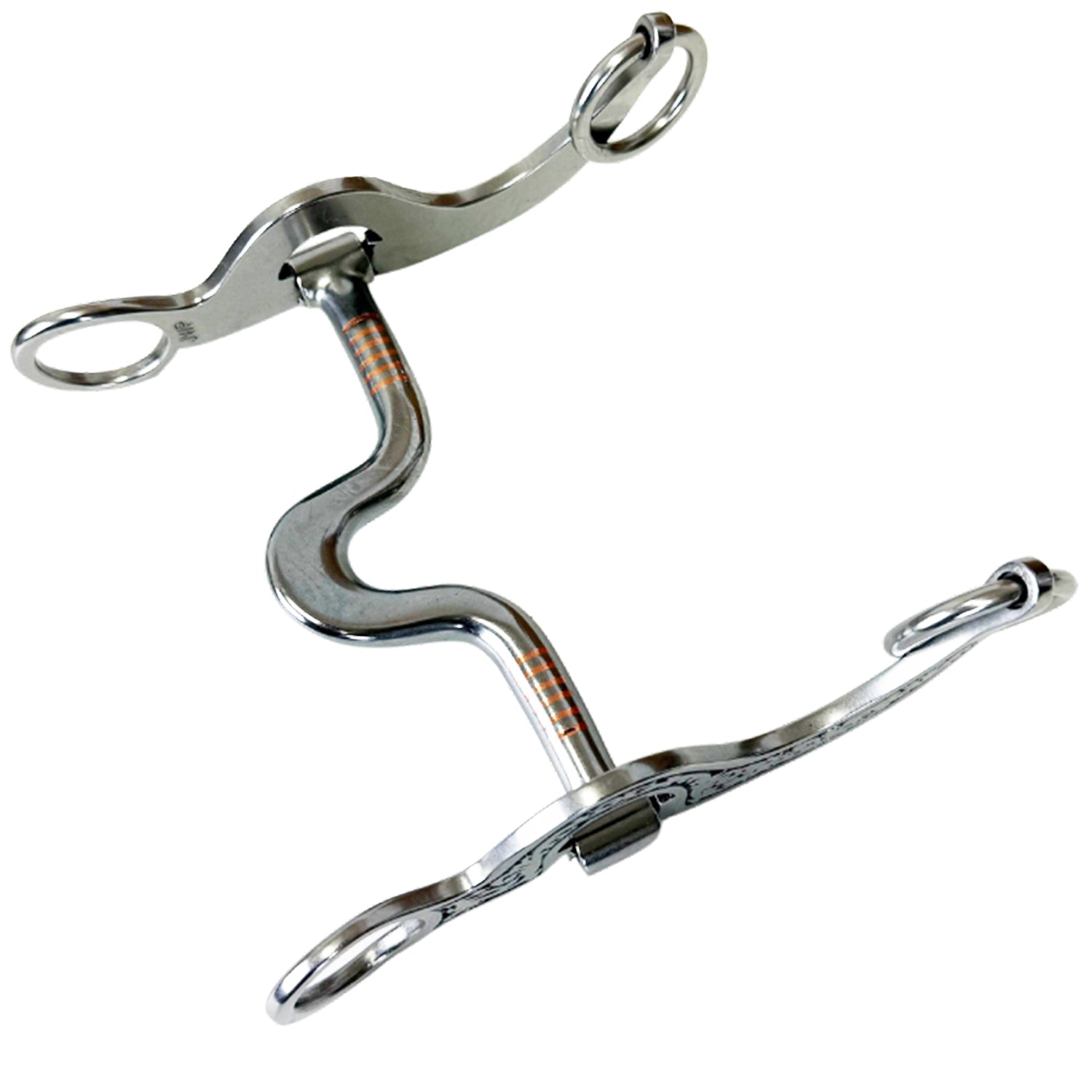 This 5” curb bit features Jeremiah Watt's Arena Classic #100 Cheek Pieces and a Floral Spoon Port Mouth. The moving rings ensure your rein signal is not too abrupt, while the spoon port design lets you gradually introduce upper palate pressure with gentleness and finesse. Ideal for riders who demand both effectiveness and horse-friendly performance.