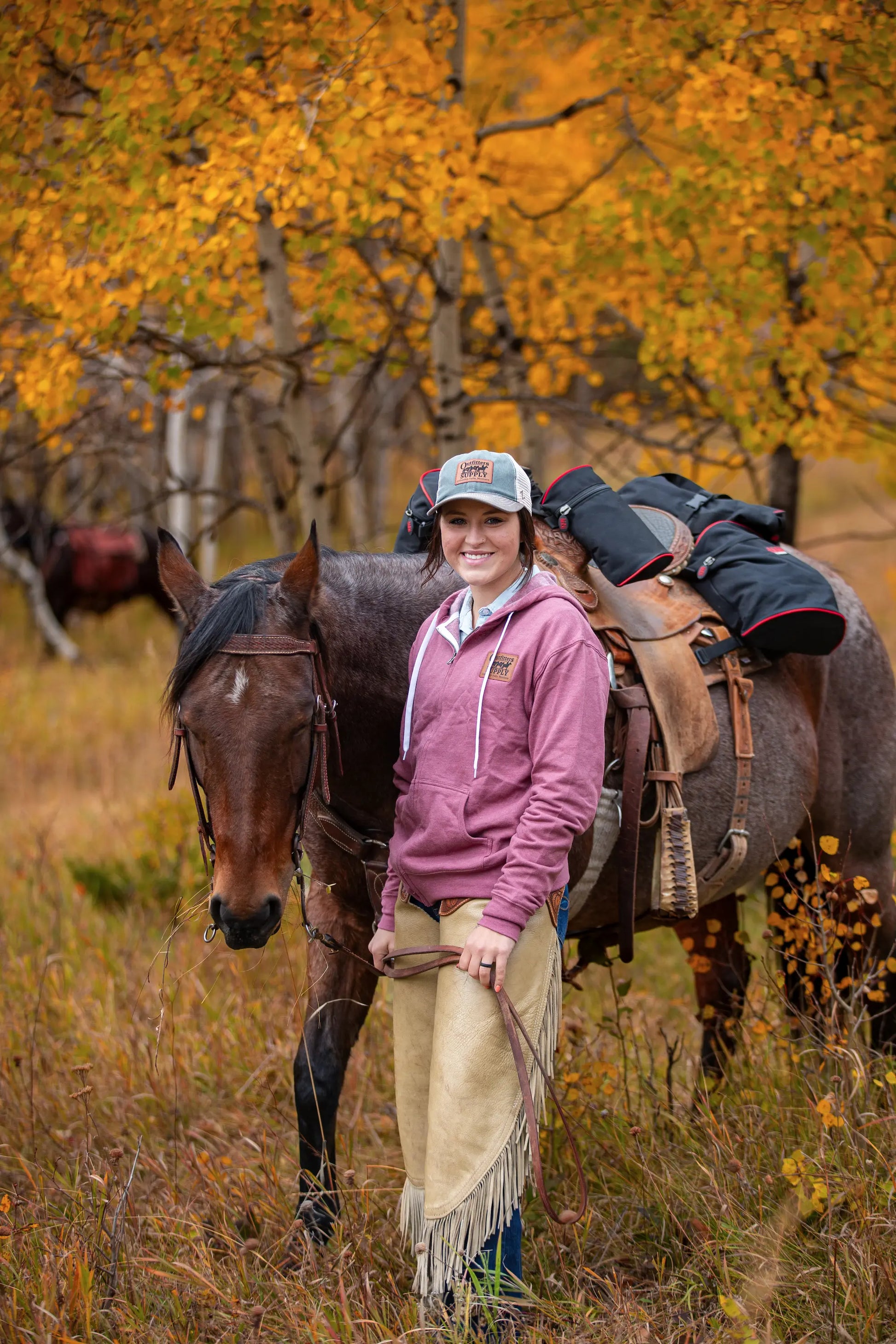 This relaxed fit, old school full zip hoodie features a tapered neck, flat shoestring draw cords and a sewn on leather Outfitters Supply logo