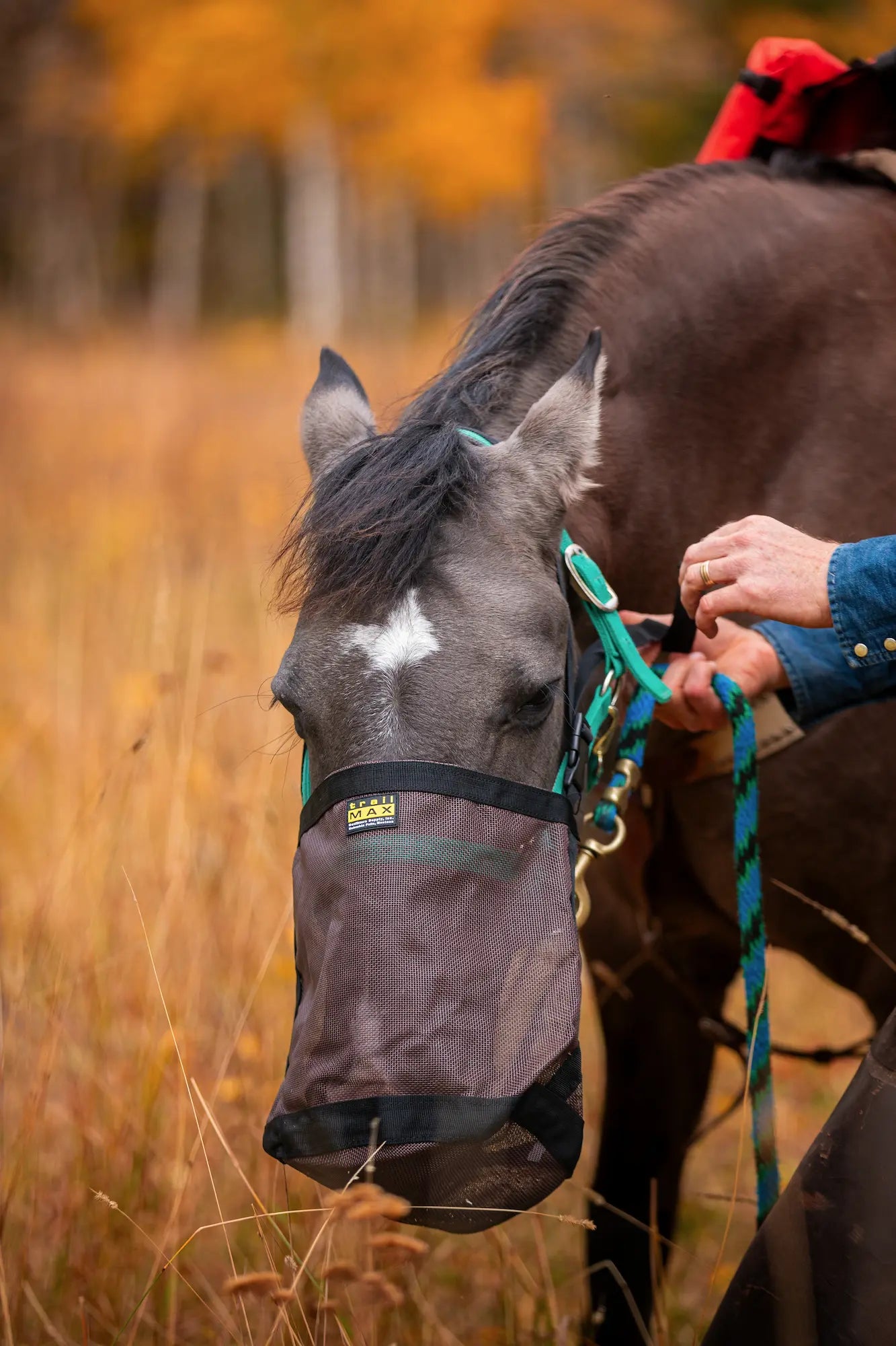 The lightweight yet heavy duty mesh bag still packs up incredibly small, but has been redesigned with all of the seams reinforced and stitched so that there are no exposed edges for the horse to grab a hold of. We've also made it just a bit wider and a bit shorter so that it won't collapse as easily when a horse or mule head pushes deep into the bottom.