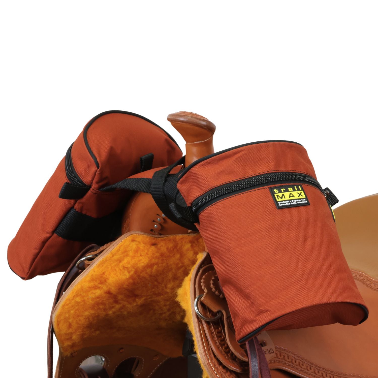 Our TrailMax Saddlebag products have been tested in the rugged Rocky Mountains of Montana & have proven their quality & durability. The TrailMax Medium Horn Bags easily fit most endurance saddles & fit over most size western saddle horns. They are secured with straps over the pommel & tied down with the front saddle strings to prevent shifting & slapping against the horse or rider. Each set of Medium Horn Bags now includes a pair of TrailMax Grab-and-Go removable insulated liners. These liners eliminate the need to remove your saddlebags to access and carry your lunch, beverages or gear. Simply open your horn bag, grab the liner by its heavy duty handle and go! These bags are ideal for short day rides but can be combined with the TrailMax Pommel Pocket. For longer rides, add our Medium Saddle Bags, Large Saddle Bags or a TrailMax Cantle Bag.