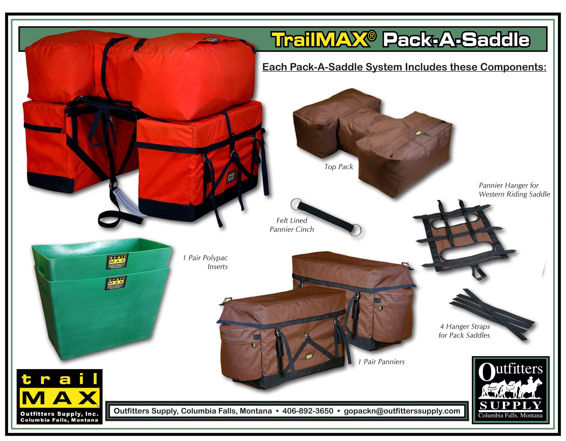 DESIGNED BY EXPERIENCE - The TrailMax Pack-A-Saddle Pannier system is designed to be versatile. These saddle panniers are ideal for the backcountry hunter or beginning packer. This system can be used on a western riding saddle, sawbuck pack saddle or decker pack saddle. We include a pannier hanger for western riding saddles and a heavy duty hanger strap for use with pack saddles.